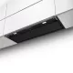 Ucelený vzhled umocňuje černý spodní panel odsavače, pod kterým jsou ukryty kovové tukové filtry omyvatelné v myčce.