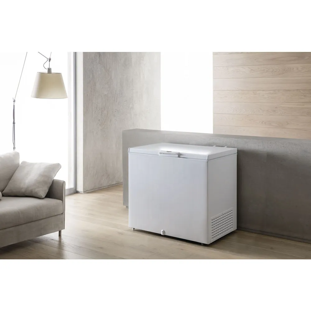 Volně stojící truhlicová mraznička v energetické třídě F má využitelný objem 204 litrů a zaručuje bezpečné uložení vašich oblíbených potravin.