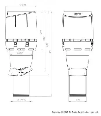 Větrací komínek na střechu se používá pro odvod vzduchu z kuchyňské digestoře nebo pro nucené větrání. Odvětrávací potrubí je izolované minerální vlnou. Vnitřní potrubí je vyrobeno ze zinkovaného plechu, vnější potrubí je z polypropylenu. Součástí balení je odvětrávací potrubí, hlavice FLOW a instalační šrouby. Pro montáž komínku je potřeba použít vhodné průchodové prvky.