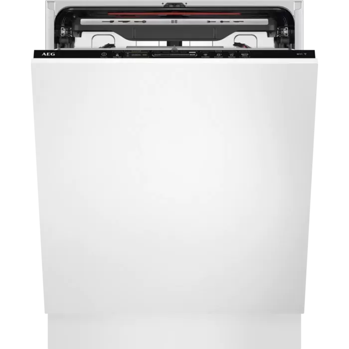 - Horní košík má 2 skládací držáky, 2 skládací drátěné držáky pro skleničky, 2 měkké špičky, 6 měkkých špiček pro vinné sklenky, skládací poličky na šálky, Premiové pojezdy, nerezové držadlo AEG, boční úchyty koše