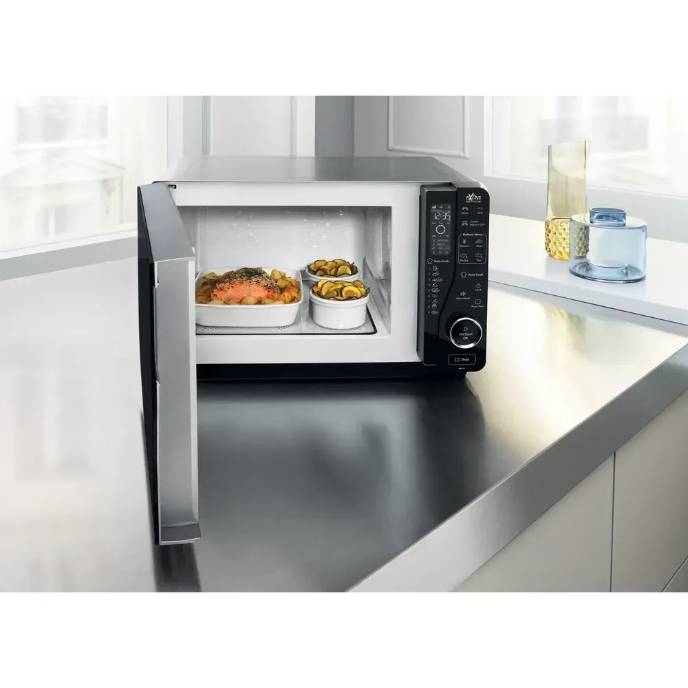 Jet Start Vynikající rychlost ohřevu. Funkce Jet Start dodává maximální výkon do vnitřku trouby po dobu 30 sekund, čímž zajišťuje ideální teplotu pro ohřev potravin s vysokým obsahem vody, jako jsou čiré polévky nebo nápoje.