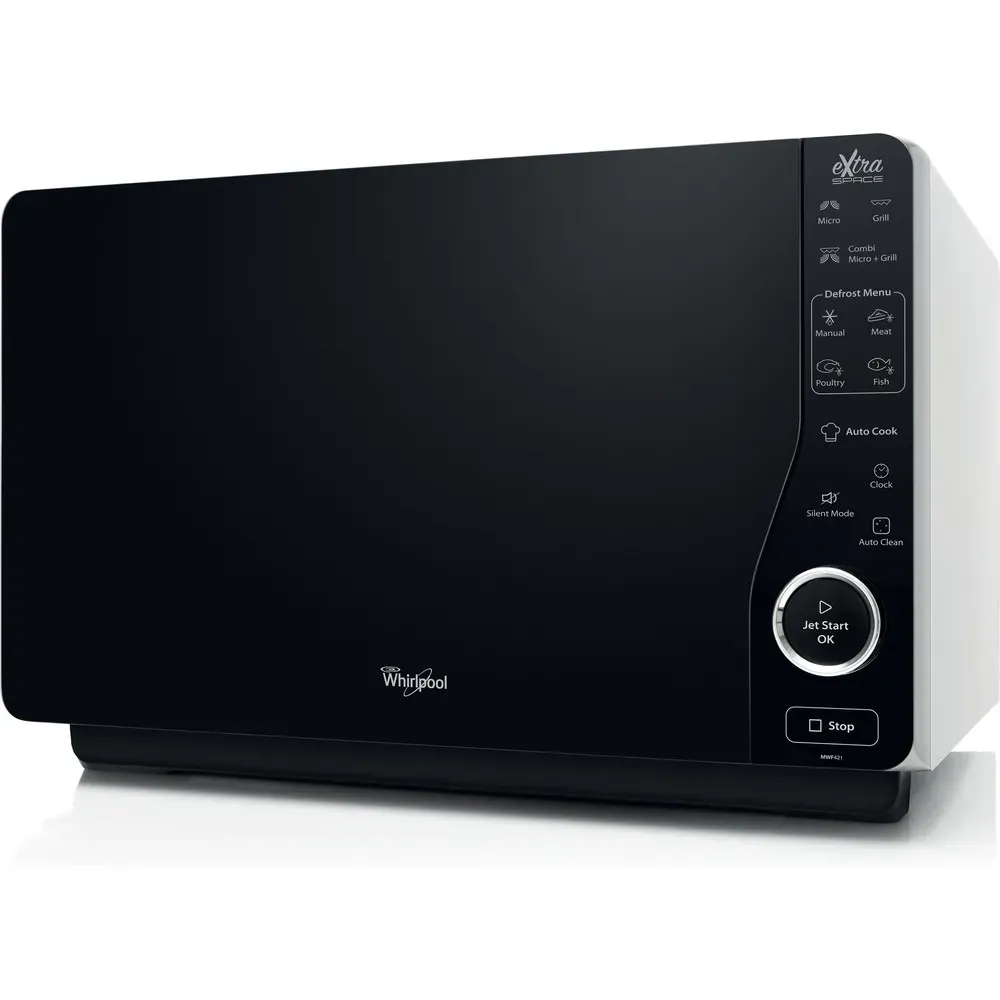 Přednosti této volně stojící mikrovlnné trouby Whirlpool: stříbrná barva. Funkce grilování.