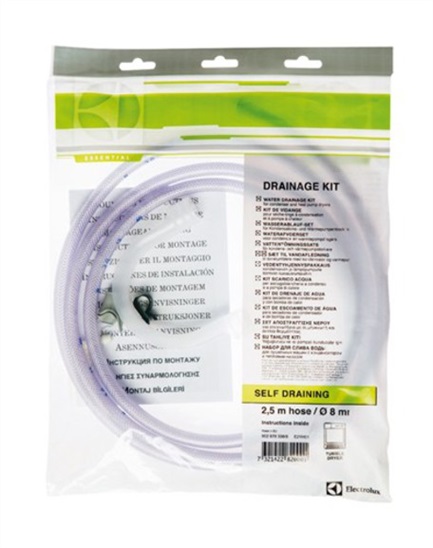 Sada pro odvod vody eliminuje nutnost manuálního vyprazdňování nádržky. Snadno ji připojíte k umyvadlu nebo vodovodnímu potrubí a voda se automaticky vypustí. Vhodné pouze pro modely s nádržkou na vodu v horní části sušičky.
