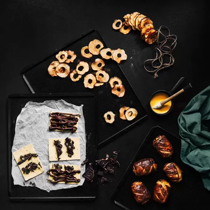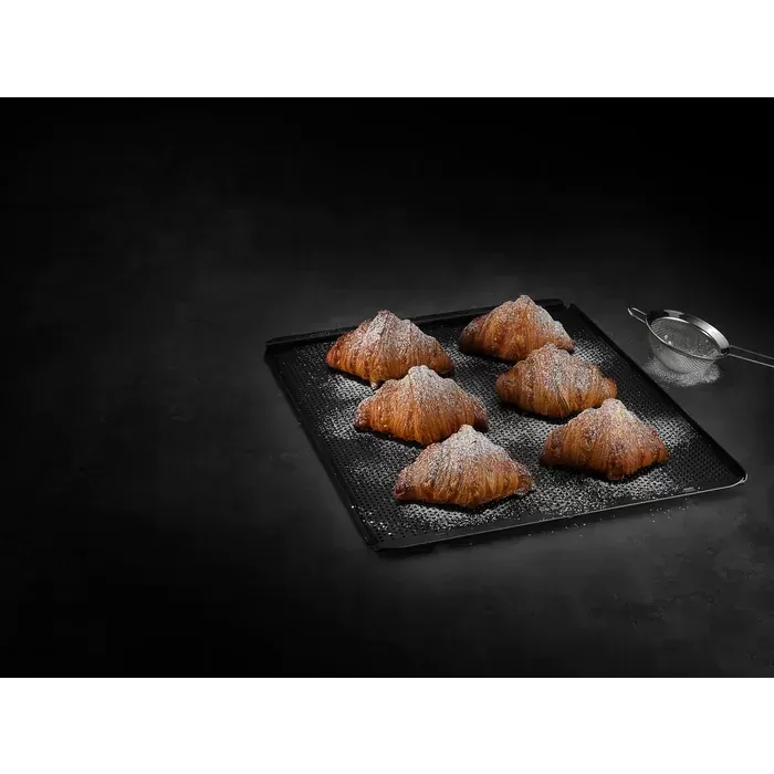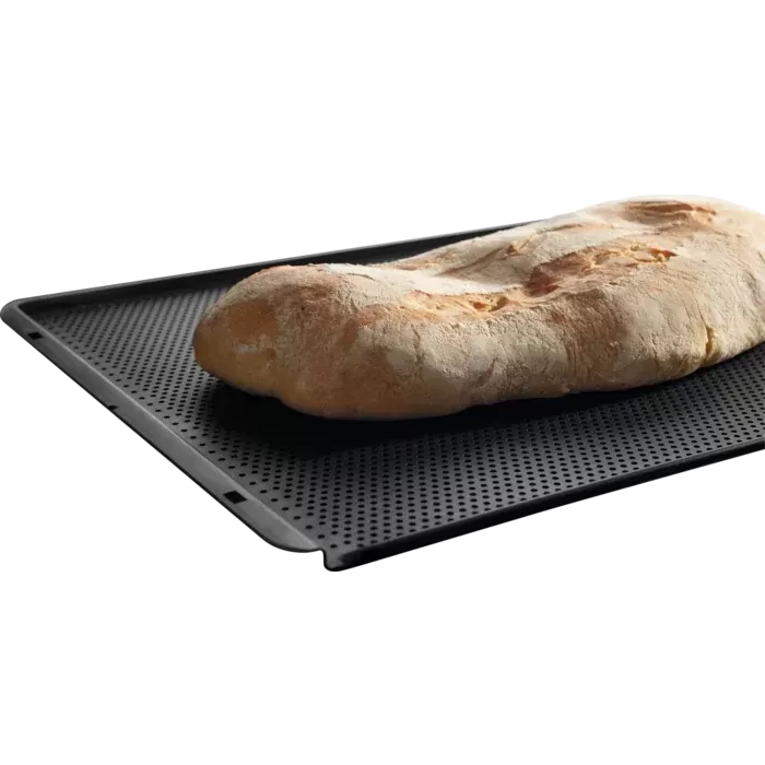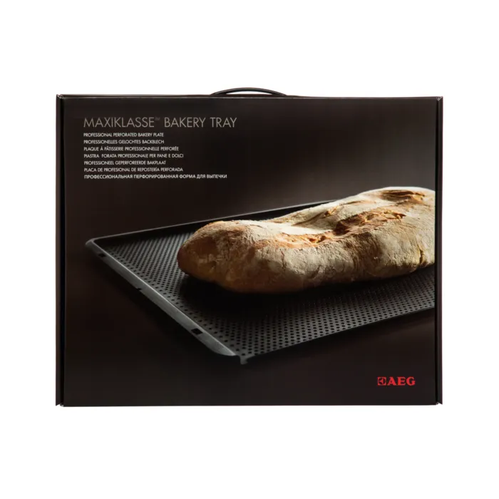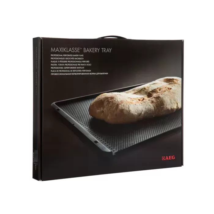 Vychutnejte si čerstvě pečené bagety a croissanty s dokonale zlatou kůrčičkou a měkkým vnitřkem. Otvory v hliníkovém plechu napomáhají cirkulaci tepla a páry kolem těsta a pod křupavou kůrkou se tak uvnitř uchová měkkost a vlhkost. Skvěle se rovněž hodí k sušení jídla jako např. jablečných kroužků nebo zeleniny. Je nepřilnavý a snadno se čistí. Je určen k použití v parní troubě AEG MAXIKLASSE™. Rozměry: 46,6 x 38,5 cm