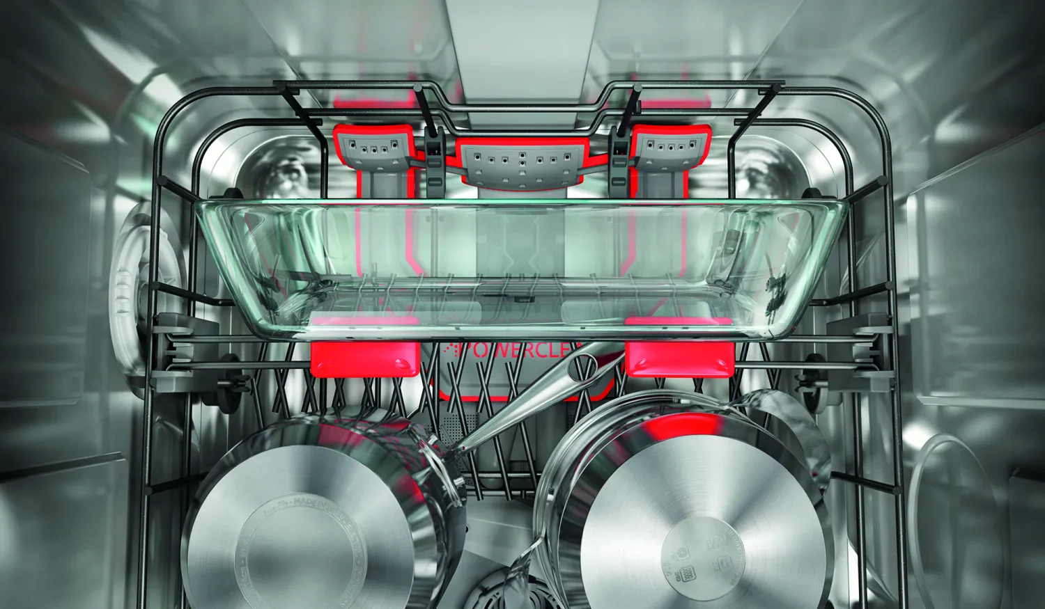 Až o 60 %* lepší výkonnější trysky ve spodním koši. Trysky lze aktivovat pro extra mycí sílu a zajištění dokonale čistého nádobí bez předmývání, a to i v případě velmi připálenych hrnců. Součástí technologie PowerClean Pro je také optimalizace polohování ukládaného nádobí, čímž vzniká o 30 %** více místa ve spodním koši (hrnce a pánve lze umístit na výšku).