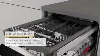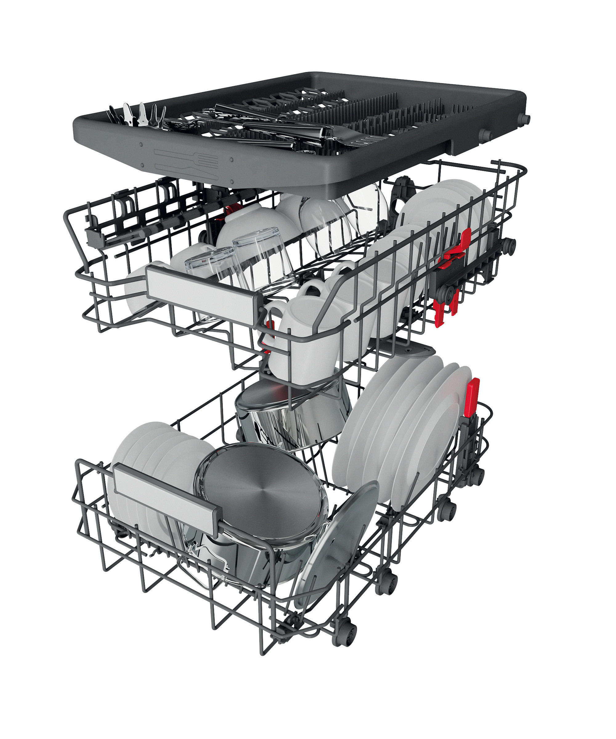 Flexibilní uspořádání nádobí Dokonalá organizace prostoru. Díky modulárním košům a nastavitelným držákům talířů si můžete prostor v myčce zvětšovat, zmenšovat nebo přizpůsobovat svým představám.