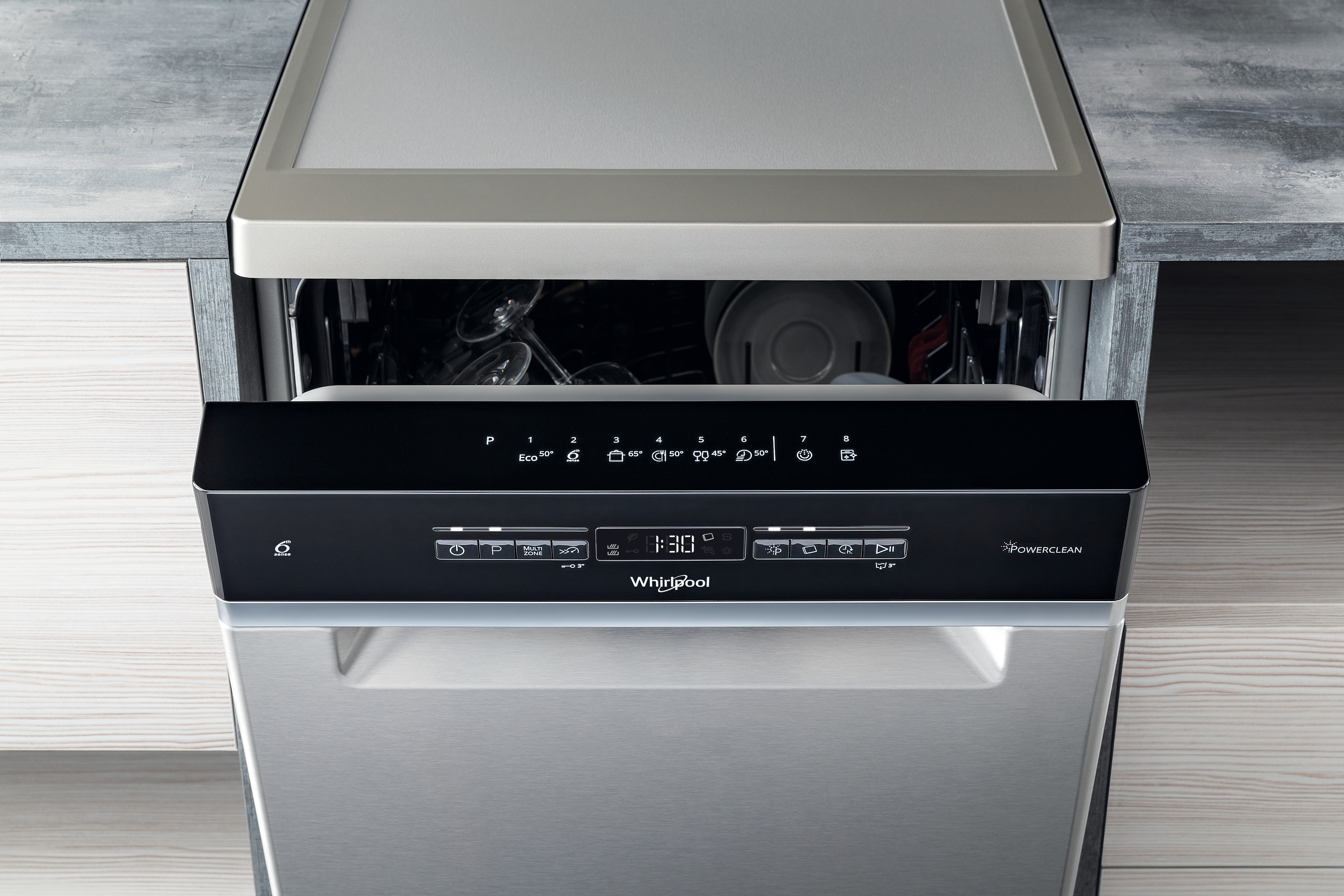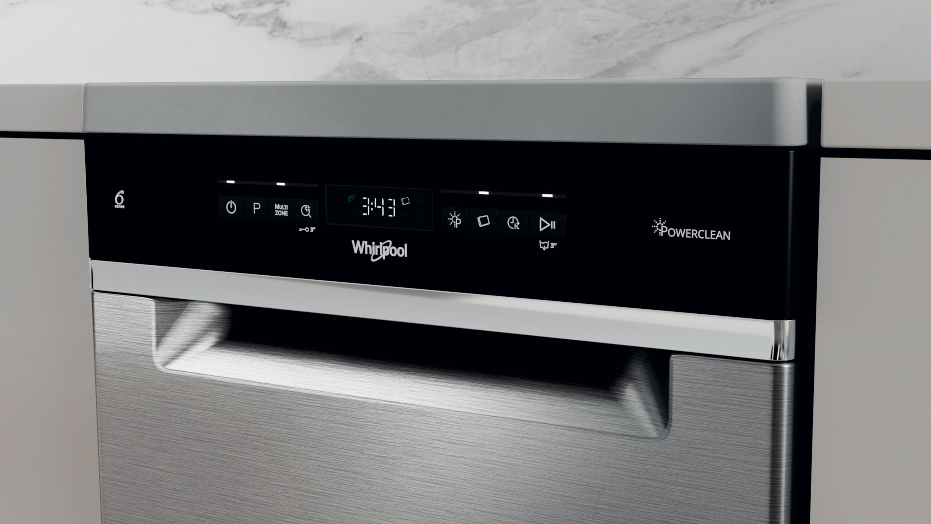Volně stojící myčka nádobí Whirlpool WSFO 3O23 PF X v energetické třídě E s technologií 6. SMYSL
