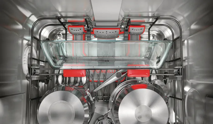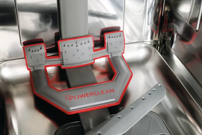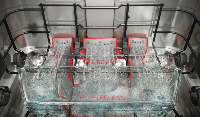 PowerClean Pro O 60 %* výkonnější vodní trysky umístěné ve spodním koši, které lze aktivovat pro zvýšení mycího výkonu a zajistit tak dokonale čisté nádobí bez předmytí. Rovněž optimalizuje umístění nádobí a poskytuje o 30 %** prostoru navíc ve spodním koši.