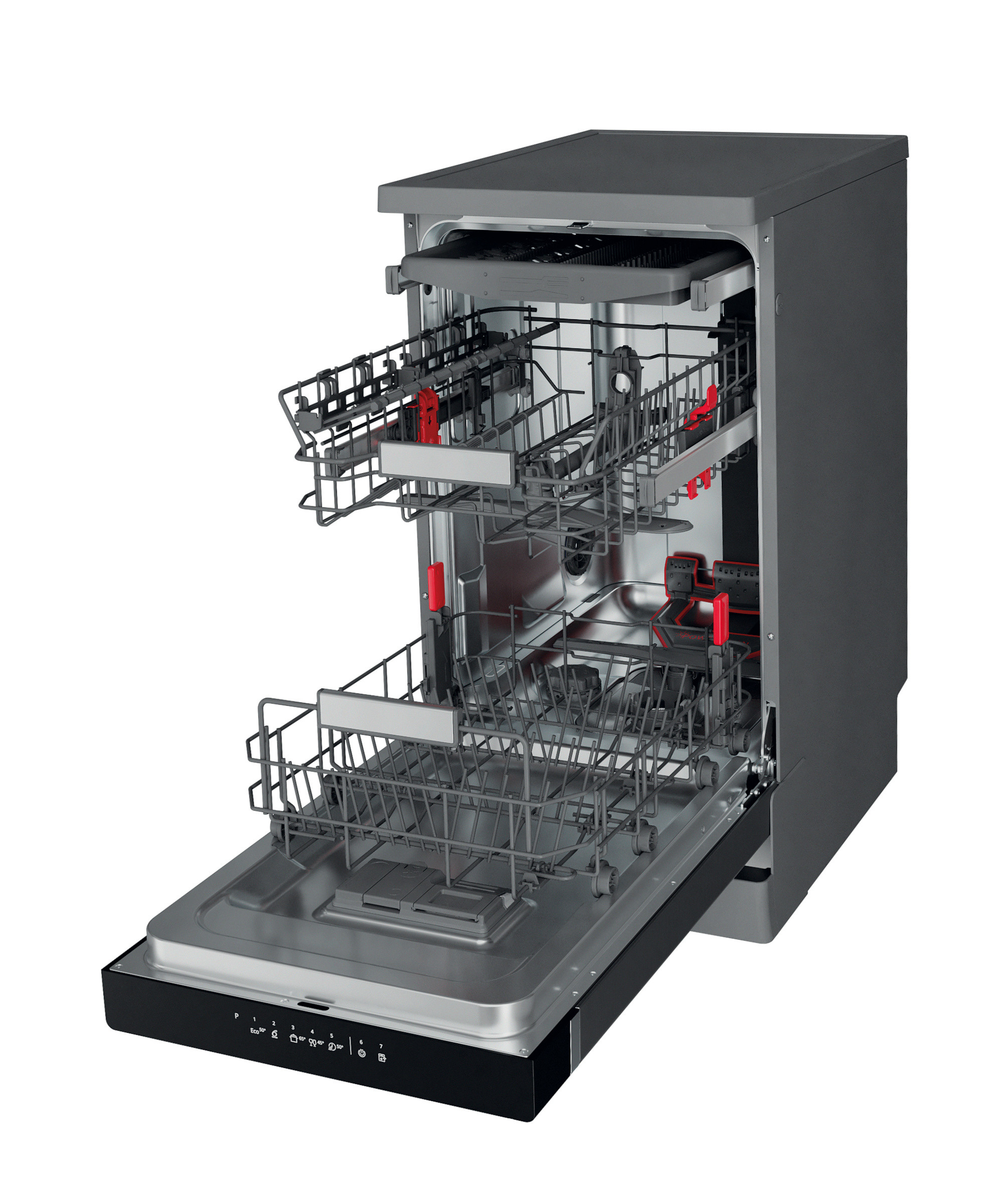 Extra Space Revoluční organizace prostoru. Jedinečná konstrukce Extra Space umožňuje vkládat hrnce a pánve do spodního koše ve svislé poloze, což nabízí dodatečný prostor pro dalších 10 kusů nádobí. Šetříte místo, šetříte čas.