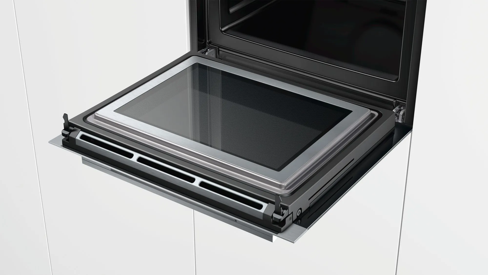 Pečicí trouba s mikrovlnami s 10 druhy ohřevu: 4D horký vzduch, horký vzduch eco, horní/spodní ohřev, horní/spodní ohřev eco, cirkulační infra-gril, velkoplošný gril, maloplošný gril, stupeň pro pizzu, coolStart (hluboce zmrazené jídlo), spodní ohřev