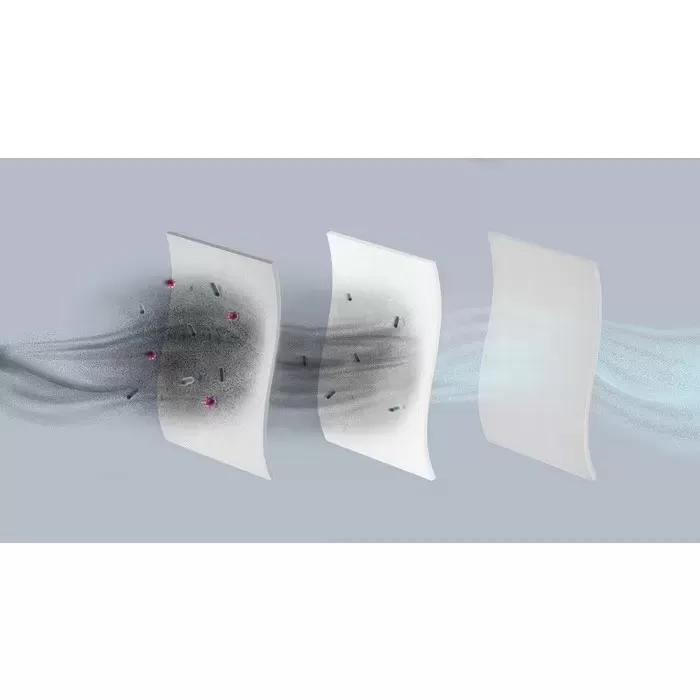 Syntetický materiál tohoto prachového sáčku filtruje až 99 % částic o velikosti menší než 1 mikron (tj. 15krát menší než průměr lidského vlasu) a současně čistí vzduch o 40 % efektivněji než běžný papírový sáček. Tím snižuje přítomnost vzduchem přenosných alergenů a bakterií ve vaší domácnosti.