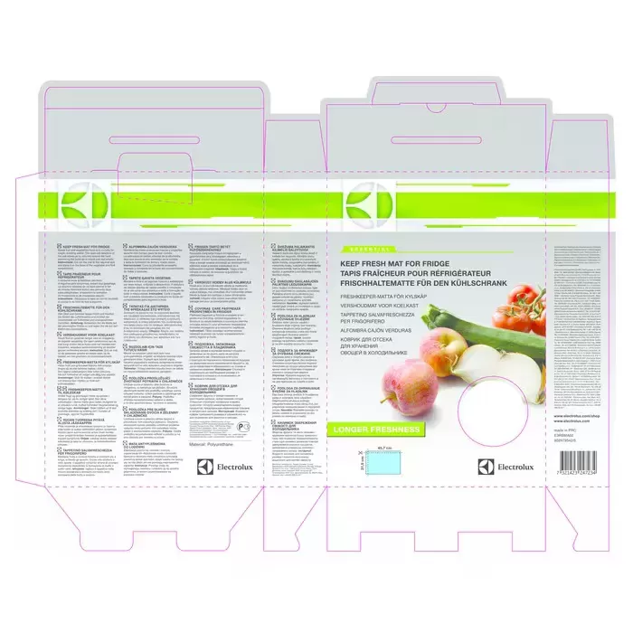 Udržujte ovoce a zeleninu stále svěží. Podložka umožňuje cirkulaci vzduchu v prostoru pro ovoce a zeleninu, zabraňuje nepříjemným zápachům a hromadění plísní.