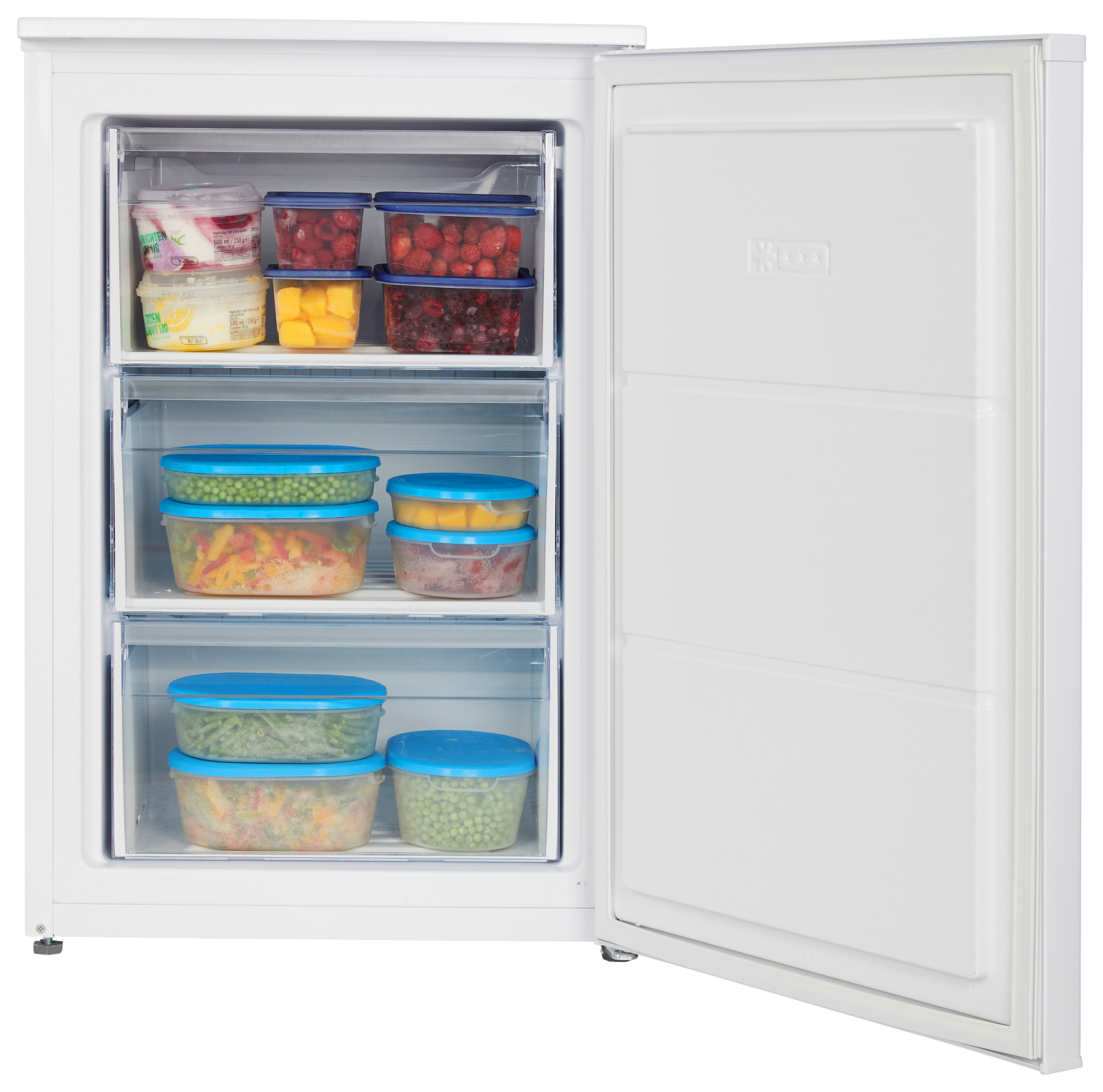 Vnitřní uspořádání mrazáku je řešeno třemi zásuvkami pro přehledné uložení potravin. Při výpadku elektrického proudu se o zmrazené potraviny nemusíte obávat po 16 hodin - po tuto dobu je mrazicí část schopná uchovávat potraviny ve zmrazeném stavu.