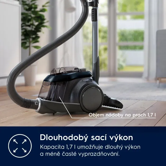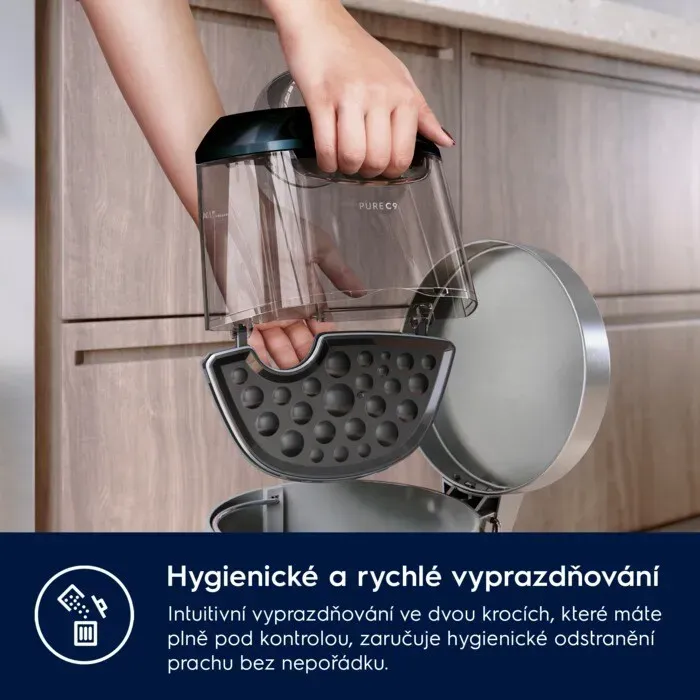 - Bezsáčkový vysavač: Nemusíte sledovat, které vhodné sáčky kupovat a kde je ukládat. Nádoba na prach i filtry jsou snadno ovladatelné.