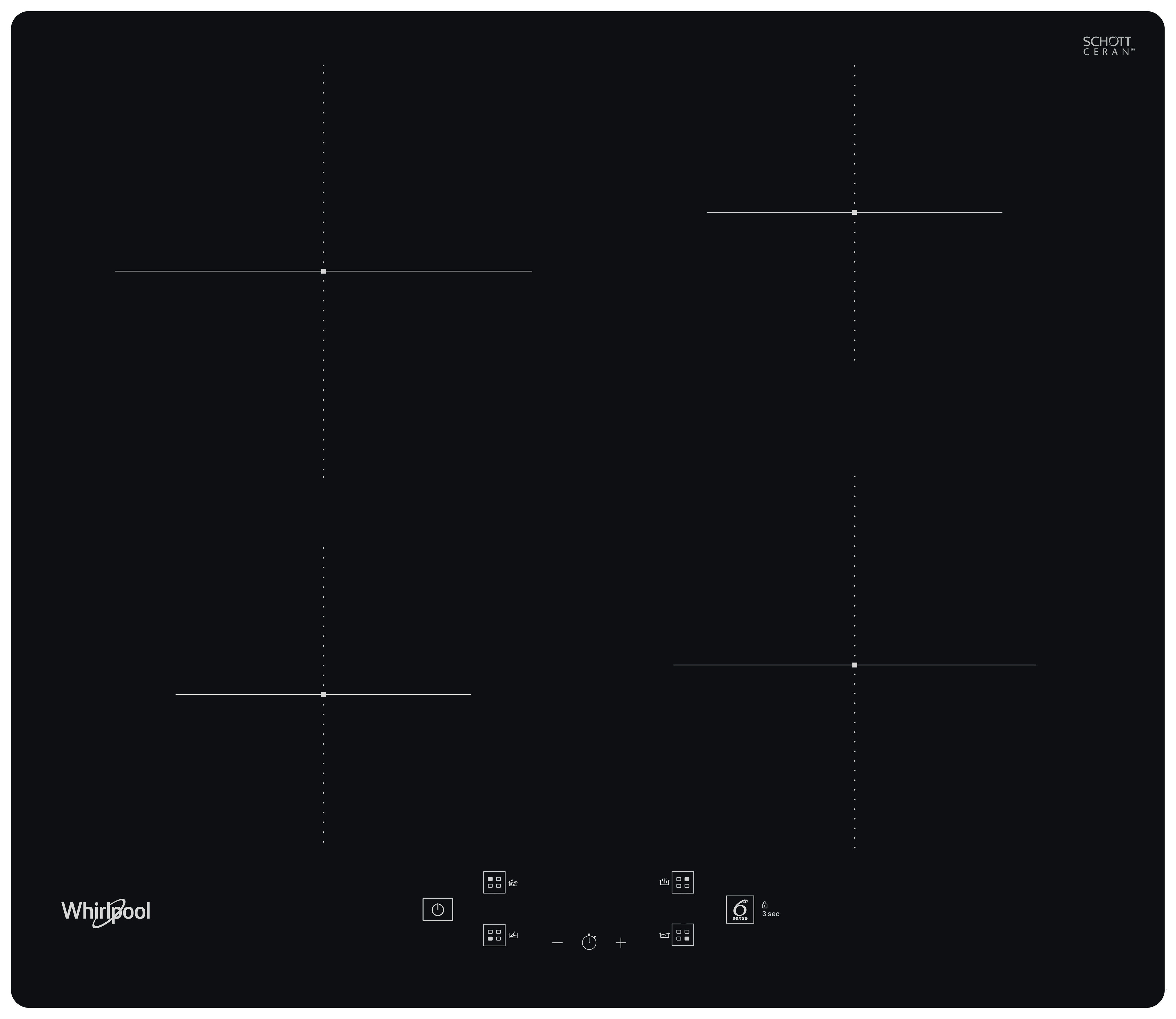 4 indukční varné zóny. přednosti této indukční sklokeramické varné desky Whirlpool: Elegantní technologie, která ohřívá pánev, nikoli varnou desku, čímž snižuje rozptyl energie a zajišťuje dokonalé výsledky vaření. Elektrické připojjení.