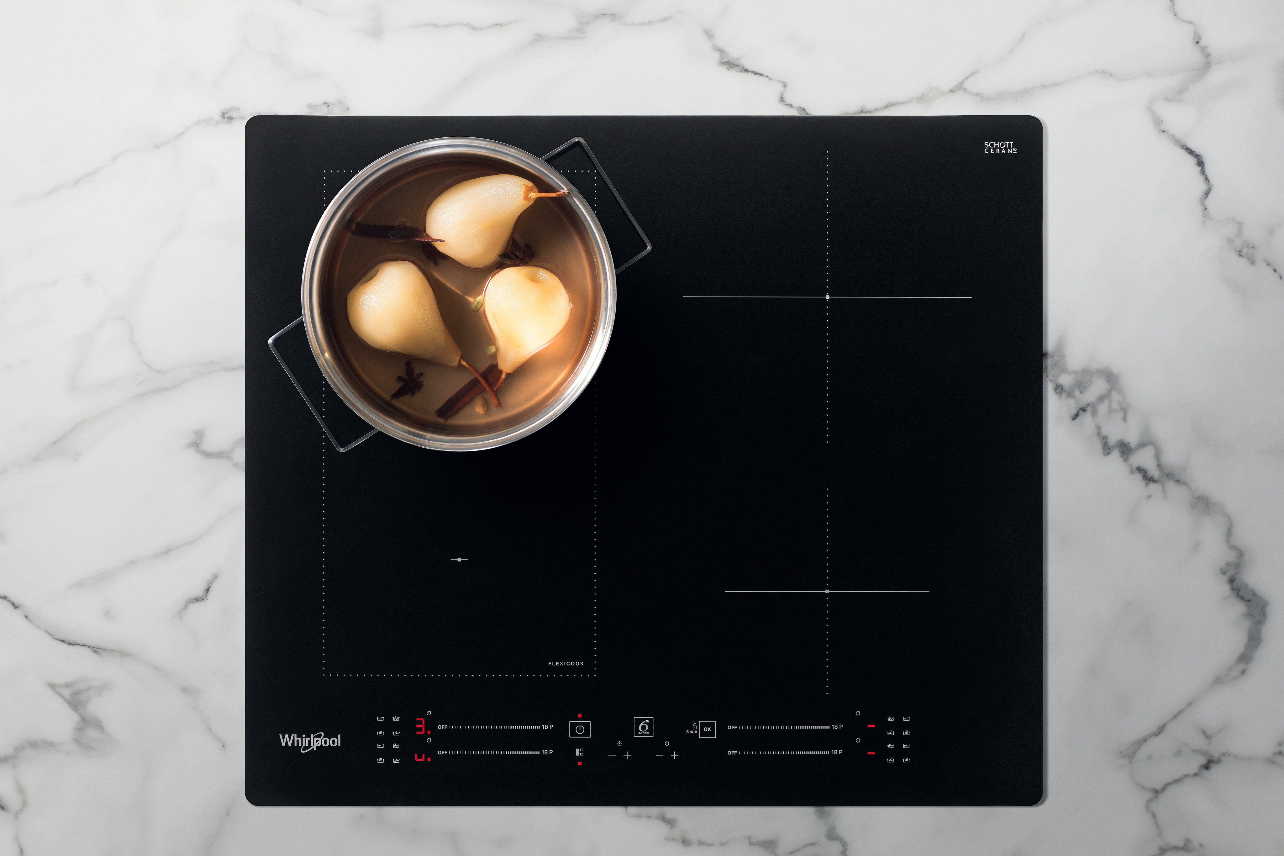 4 indukční varné zóny. technologie varných zón FlexiCook, která umožňuje spojit více zón do jedné pro větší hrnce a pánve. Slider pro snadné ovládání spotřebiče. Přednosti této indukční sklokeramické varné desky Whirlpool: Elegantní technologie, která ohřívá pánev, nikoli varnou desku, čímž snižuje rozptyl energie a zajišťuje dokonalé výsledky vaření. Elektrické připojjení.
