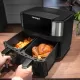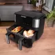 Horkovzdušná fritéza Double 8 l FR8000 je vybavena dvěma 4litrovými fritovacími koši, což přináší řadu výhod. Umožňují přípravu dvou různých jídel současně, což šetří čas a zvyšuje efektivitu vaření. Můžete například připravovat hlavní chod a přílohu najednou, aniž by se chutě nebo vůně míchaly. Tento praktický design je ideální pro rodiny a domácnosti, kde se vaří větší množství jídla, nebo pro ty, kdo rádi experimentují s různými recepty najednou.