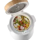 Vyjímatelná vnitřní nádoba s nepřilnavým povrchem o objemu 1,5 l je klíčovou vlastností tohoto rýžovaru. Minimalizuje přilnavost jídla, takže čištění nádoby je velice snadné a rychlé. Tento design usnadňuje každodenní používání a zajišťuje, že rýžovar je vždy připraven k dalšímu použití bez zbytečné námahy.