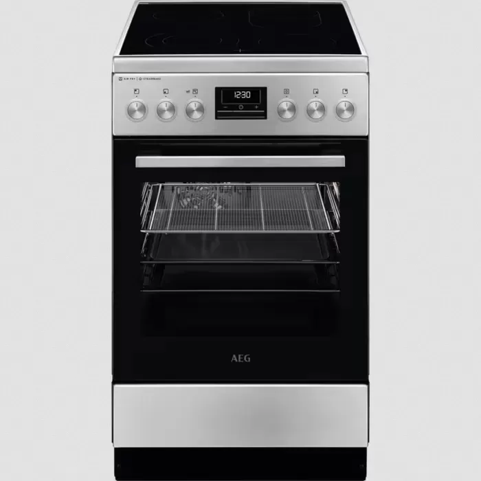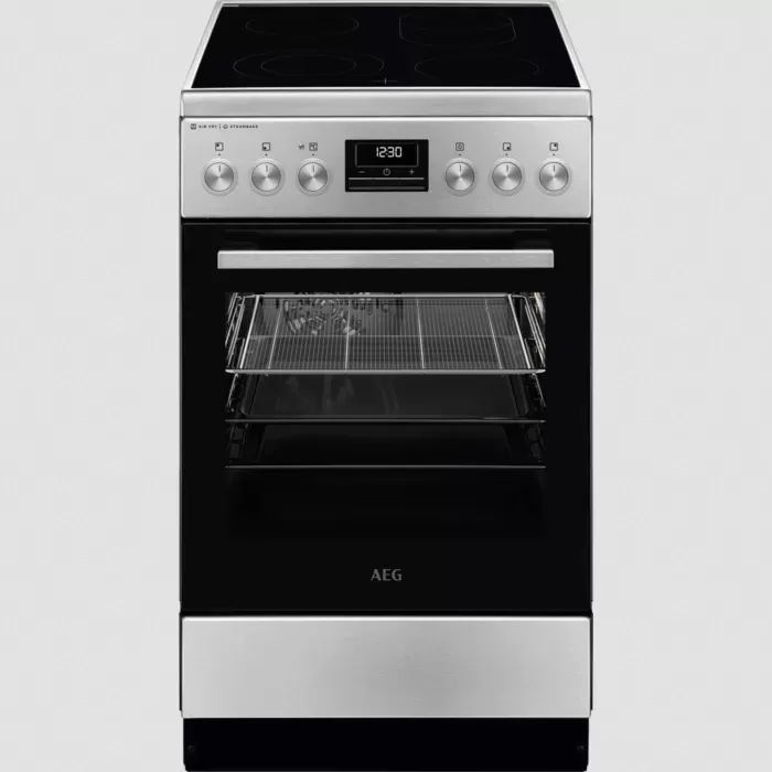 AEG série 6000 s parní funkcí SteamBake Volně stojící elektrický sporák Sklokeramický 50x60 cm Hladký smalt pro snadné čištění