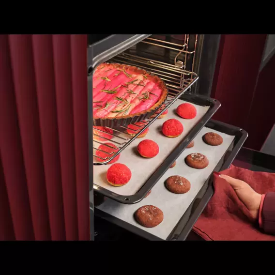 Trouba 5000 SurroundCook® s funkcí SteamBake je multifunkční spotřebič, který využívá páru k dosažení dokonalých výsledků pečení – pokrmy jsou zvenčí křupavé a dozlatova upečené a uvnitř křehké a šťavnaté. A každé jídlo je rovnoměrně upečené, aniž byste plech na pečení museli otáčet či přesouvat.