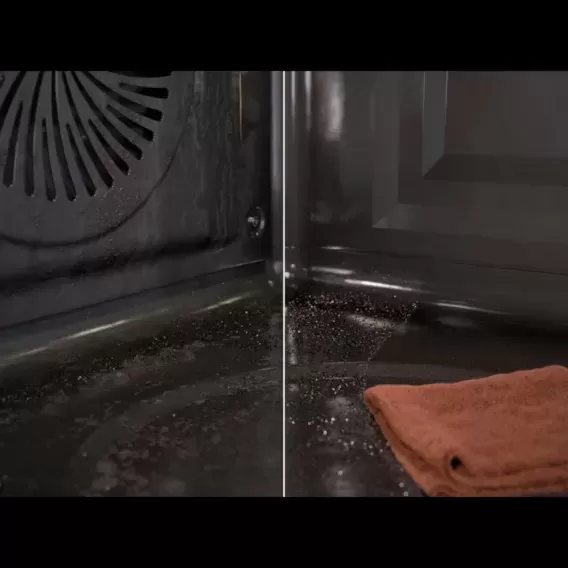 Funkce pyrolytického čištění za pomocí vysoké teploty přemění mastnotu a zbytky jídla na popel, který můžete snadno setřít vlhkým hadříkem.