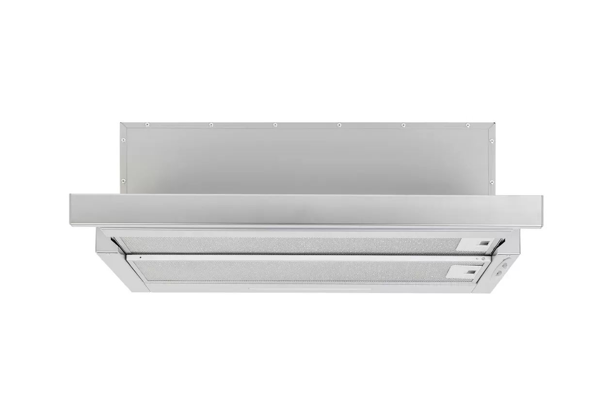 Vestavná digestoř výsuvná, jediná na trhu s odtahem dozadu nebo nahoru (oba 120 mm), šíře 60 cm, bílá s nerez lištou, max. výkon 338 m³/h (15 Pa), hlučnost Lw 56 – 71 dB(A), 3 rychlosti, odsávací jednotky mají individuálně vyvažovanou turbínu, motory jsou opatřené vratnými tepelnými pojistkami (při přetížení motoru vypne, po jeho vychladnutí opět sepne), mechanické posuvné ovládání, kovové sendvičové tukové filtry, které lze mýt v myčce, možnost práce v odtahovém i recirkulačním režimu, Výbava: úsporné LED osvětlení 1 × 2,8 W (LED pásek), zdarma zpětná klapka