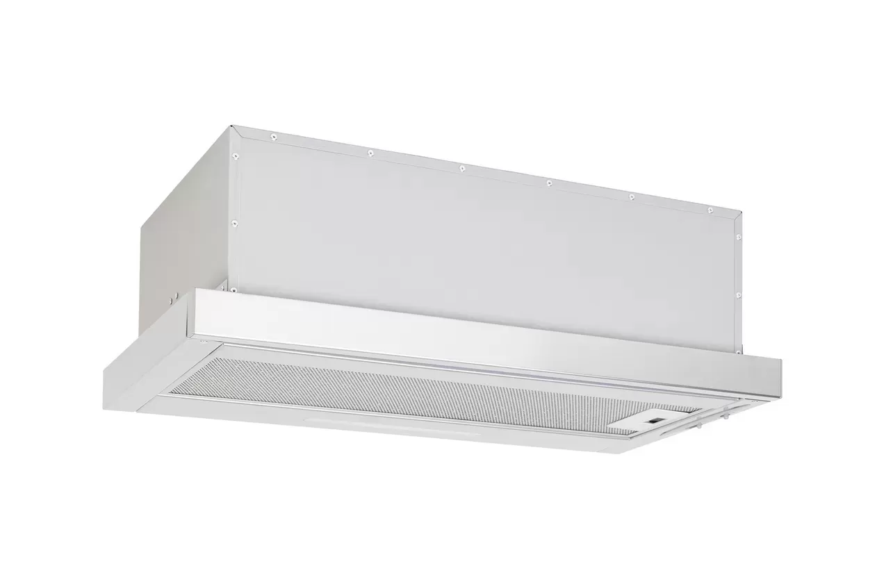 Vestavná digestoř výsuvná, jediná na trhu s odtahem dozadu nebo nahoru (oba 120 mm), šíře 50 cm, bílá s nerez lištou, max. výkon 338 m³/h (15 Pa), hlučnost Lw 56 – 71 dB(A), 3 rychlosti, odsávací jednotky mají individuálně vyvažovanou turbínu, motory jsou opatřené vratnými tepelnými pojistkami (při přetížení motoru vypne, po jeho vychladnutí opět sepne), mechanické posuvné ovládání, kovové sendvičové tukové filtry, které lze mýt v myčce, možnost práce v odtahovém i recirkulačním režimu, Výbava: úsporné LED osvětlení 1 × 2,8 W (LED pásek), zdarma zpětná klapka