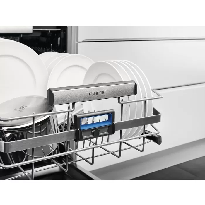 Díky našemu jedinečnému mechanismu ComfortLift® se již nemusíte ohýbat při plnění a vyndávání nádobí z vaší myčky. Lehkým stisknutím držadla se dolní koš vysune hladce nahoru směrem k vám. Je první na světě, od nás pro vaše pohodlí.