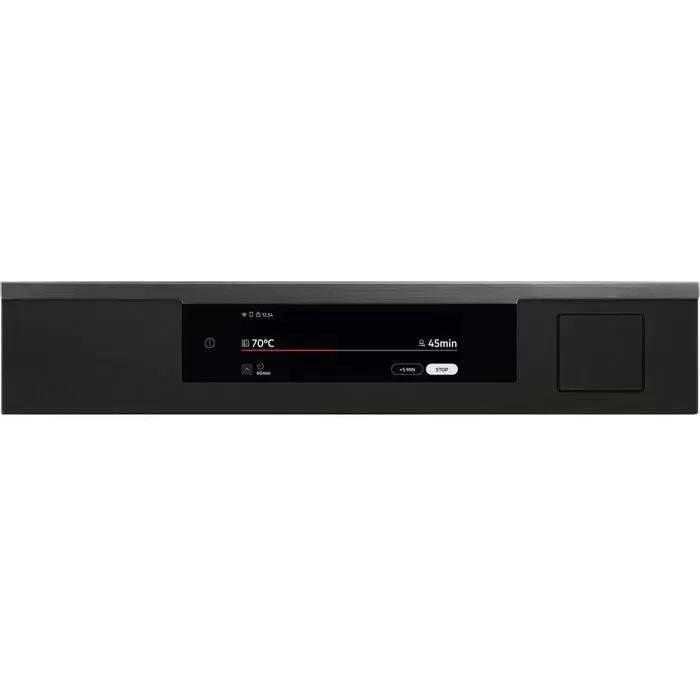 - Elektronické funkce: denní čas, nastavení tvrdosti vody, automatické vypnutí jídelní sondy, jídelní sonda - indikace teploty jádra, hlavní vypínač, denní paměť 3 dny zpětně, minutka, OTA programming (excluding power board), Oven light on/off selectable (2 ways: menu, direct access on home screen), Preheating (none, eco, fast), ukazatel teploty (°C), ukazatel zbytkového tepla, Residual heat usage (only with duration), info k servisu, Short cut keys in standby screen, doporučená teplota, jídelní sonda s odhadem času, tóny kláves, alarmů a chyb, aktivace/deaktivace (kromě hlavního vypínače), ovládání aplikací, automatické vypnutí (jen trouby), 14 Multi Step Cooking Functions, 25 Languages / Textdisplay, 5 Cleaning programs (steam cleaning, steam cleaning plus, descaling, drying, rinsing), akustický signál, Display Full colour TFT touch 7.8 inches 16 x 5, 167 Variety of pre-set cooking programmes 'Assist', výběr rychlého předehřátí, jídelní sonda, nastavení hlasitosti minutky, Check Result (Finish Assist by remaining 10% duration) ('Use residual heat' screen + beep), Dětský zámek, minutka pro čištění, Clock automatic adjustment, Clock style in standby (2 versions: digital, 7 segments), konektivita, čas vaření, čas vaření s odhadem konce, přičítání času, demo program s kódem, nastavení jasu disp., elektronická regulace teploty, Electronical door switch