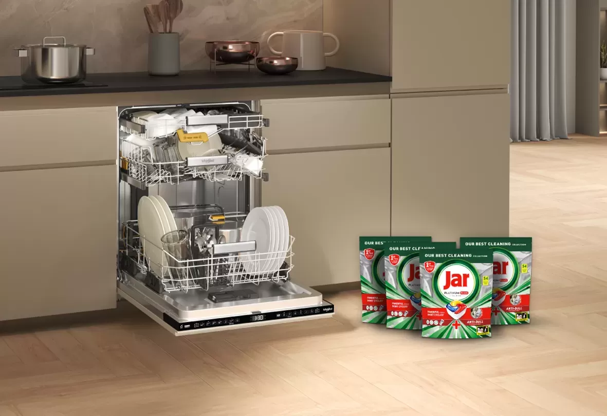 Dopřejte své myčce Whirlpool i nádobí tu nejlepší péči – a to celý rok bez starostí. Zásoba prémiových kapslí Jar Platinum Plus All in One - 4 balení po 54 kapslích - si poradí i s odolnými nečistotami a zanechají vaše nádobí dokonale čisté a lesklé.