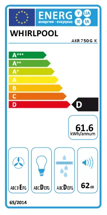 Celková roční spotřeba energie Ideální výkon, vynikající úspora. Odsavače par Whirlpool jsou navrženy tak, aby poskytovaly výjimečné výsledky a zároveň snižovaly náklady na energii.