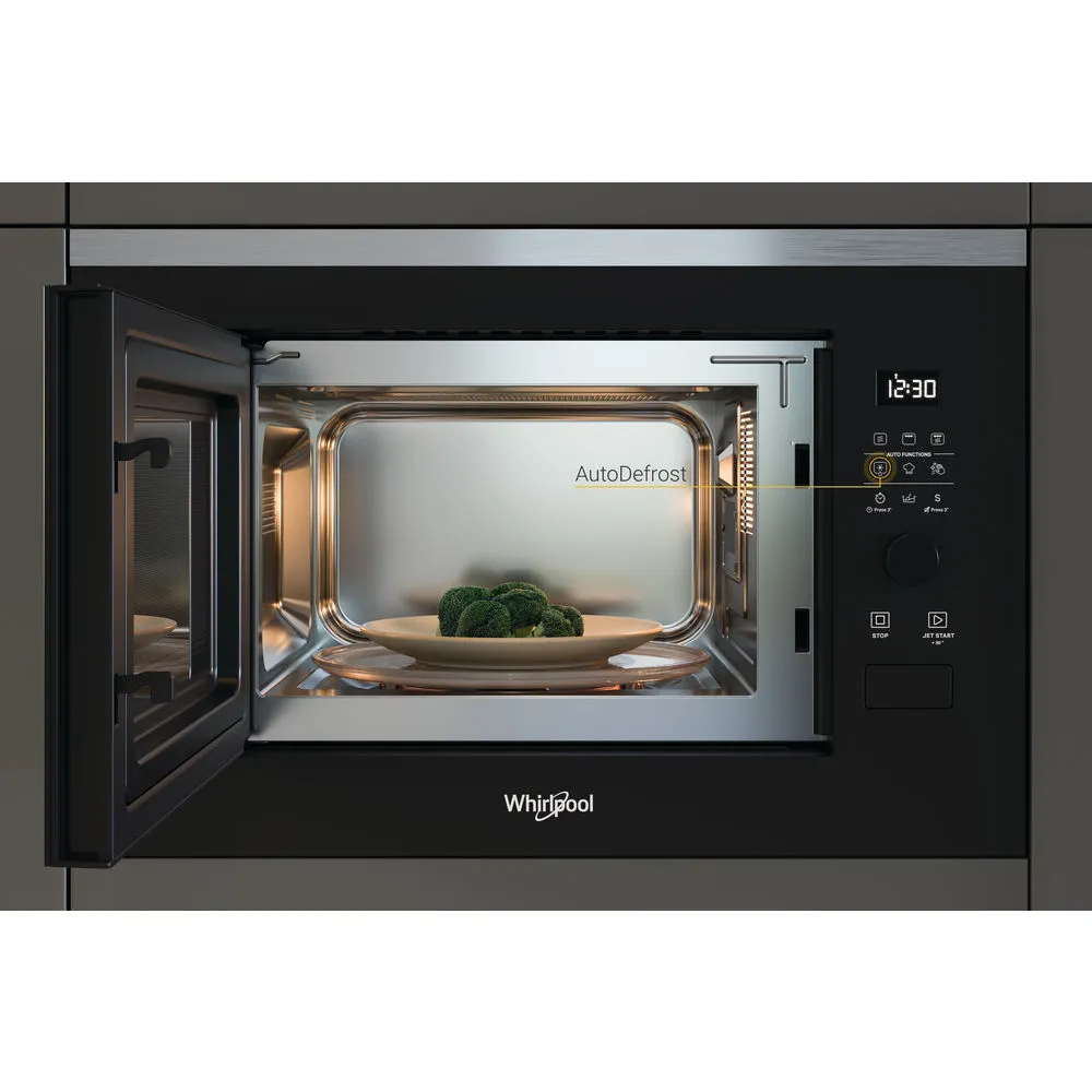 Přednosti této vestavné mikrovlnné trouby Whirlpool: funkce grilování. Funkce Jet Defrost pro mimořádně rychlé a rovnoměrné rozmrazování.