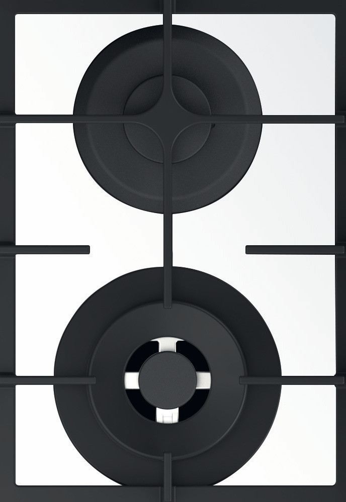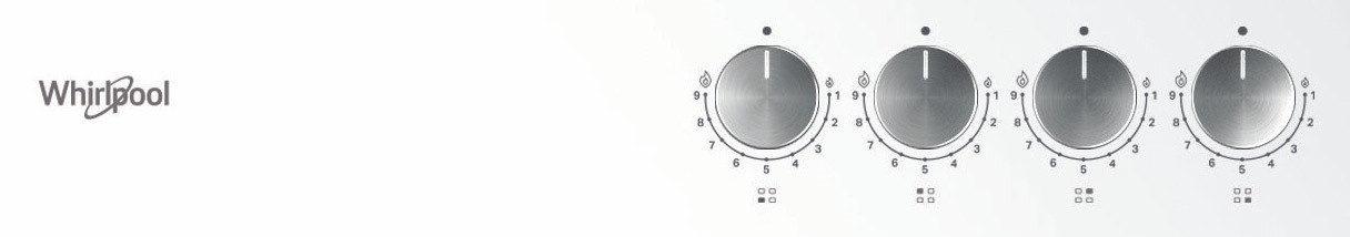 Přednosti této plynové varné desky Whirlpool: vysoce účinné hořáky, pro snížení spotřeby energie.