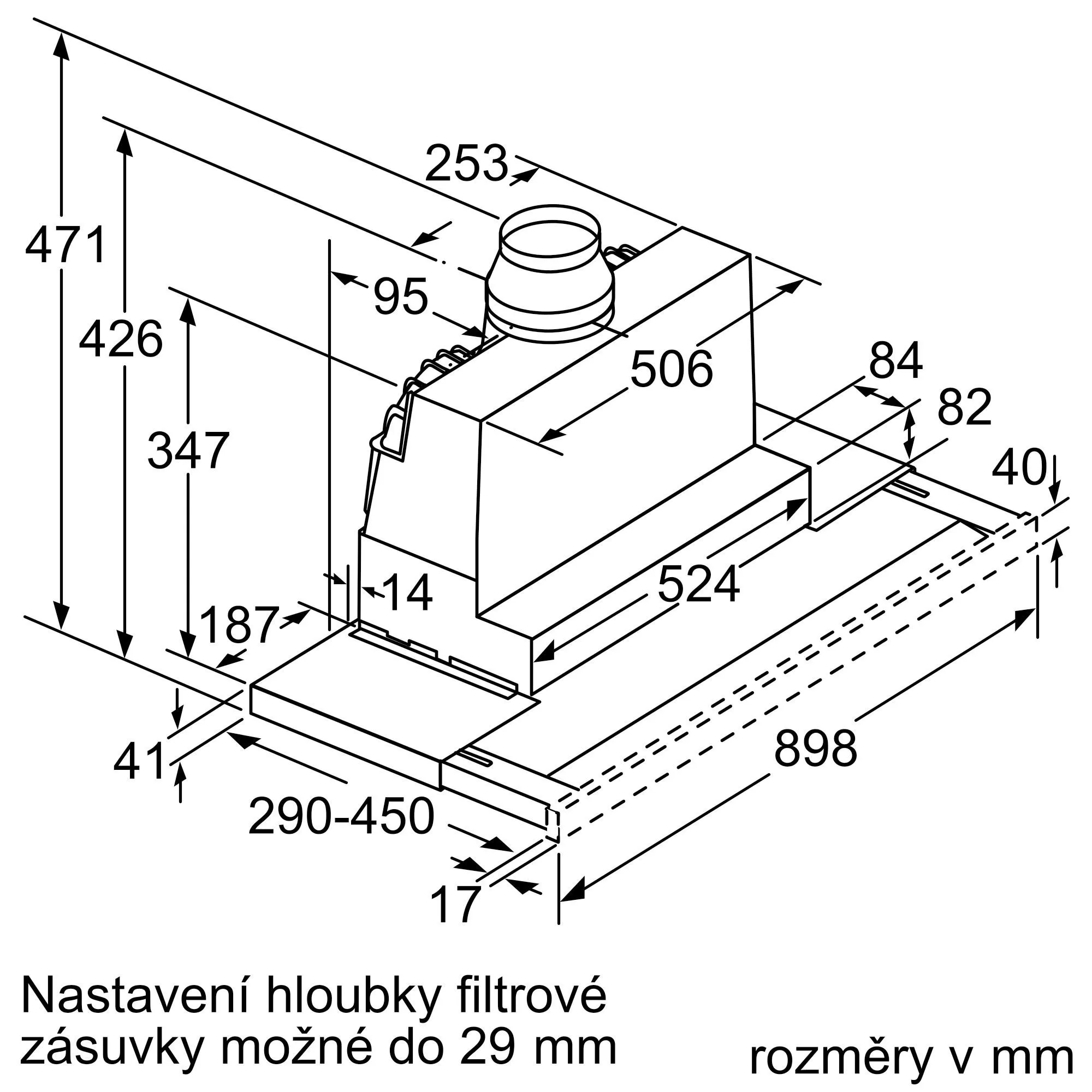 Max. výška spotřebiče při recirkulaci