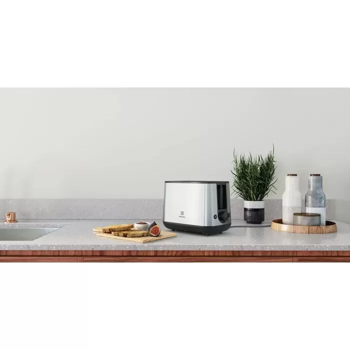 Topinkovač je vyroben z odolné nerezové oceli, která se snadno čistí.