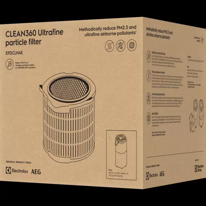 Každý filtr CLEAN360 obsahuje technologii HEPA13, jež zajišťuje 99,97% filtraci částic o velikosti 0,3 µm a zahrnuje i částice do 0,1 µm, čímž pomáhá dosáhnout absolutně minimální úrovně PM2.5.