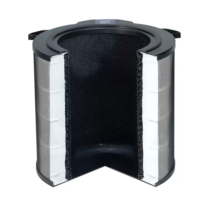 Jedinečné nabité filtrační médium zajišťuje vysoce účinnou bariéru, která zachytí 99,5 % částic až do velikosti 0,3 mikronu. Aktivní uhlík odstraňuje nepříjemné pachy, zatímco válcovitý design zajišťuje větší kapacitu a delší životnost.