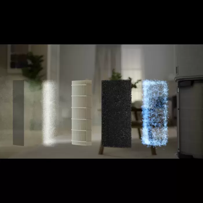 Vyčistěte vnitřní vzduch od nechtěných pachů, plynů a částic důkladně pomocí pokročilého aktivního uhlíku a filtrační technologie 360.