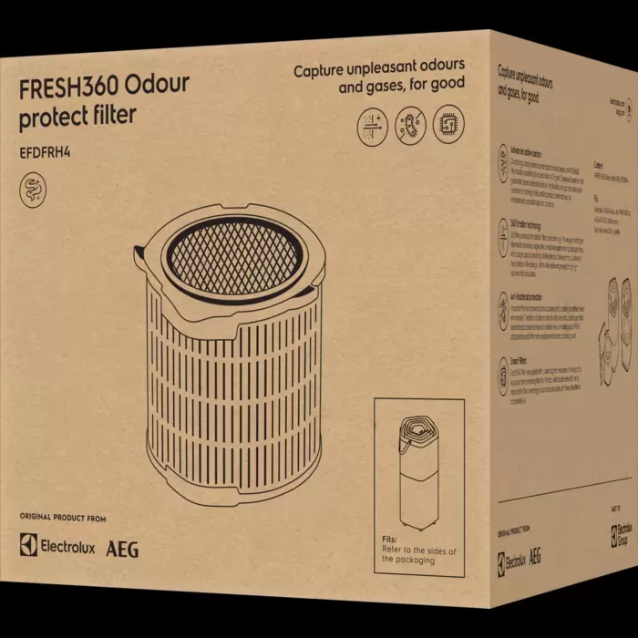Díky obsahu velkého množství pokročilého aktivního uhlíku dokáže filtr FRESH360 absorbovat těkavé organické látky a škodlivé plyny, které způsobují nepříjemné pachy. Vysoce účinný proti pachům, jako je kouř nebo výpary při vaření, a nebezpečným chemikáliím, jako je formaldehyd, acetaldehyd či benzen.