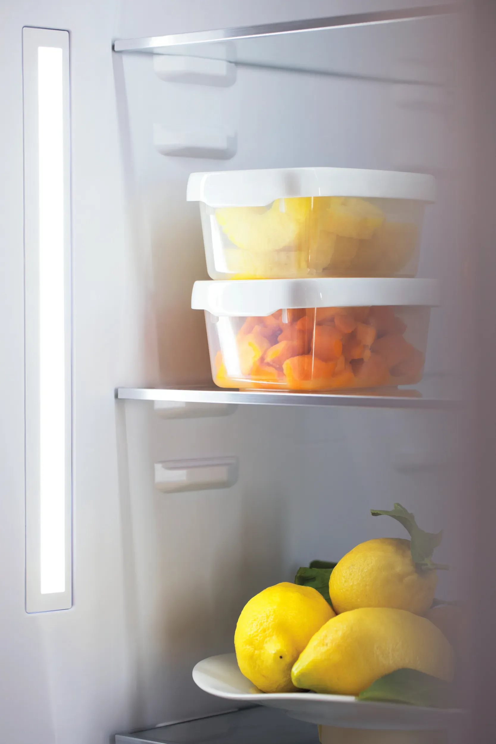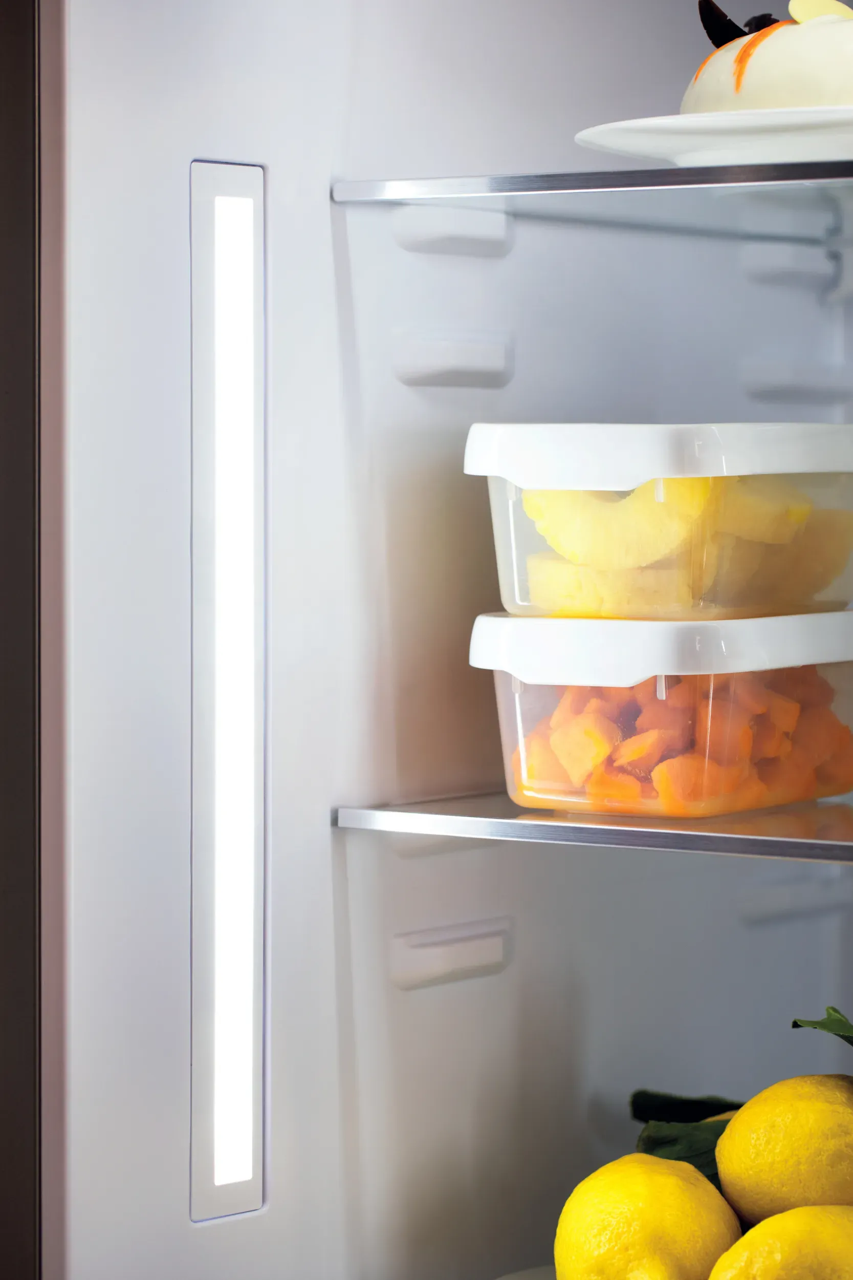 Ideální osvětlení. Energeticky úsporné LED světlo osvětluje vnitřek chladničky a usnadňuje hledání potravin.