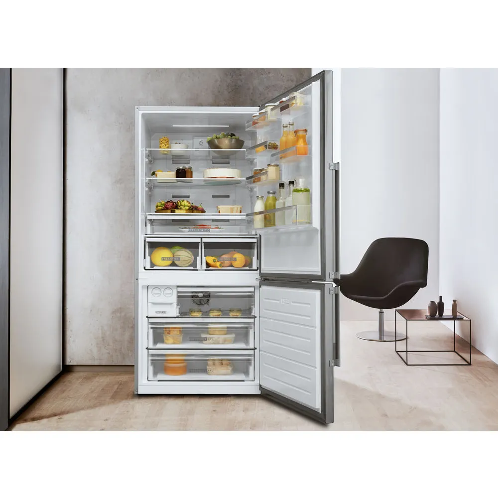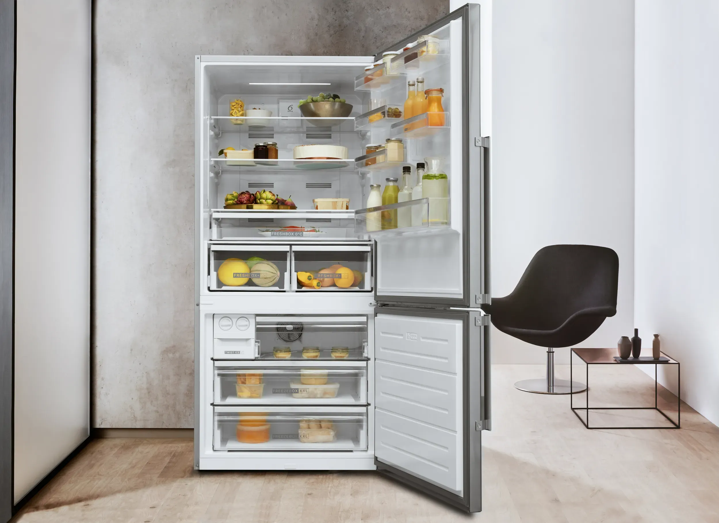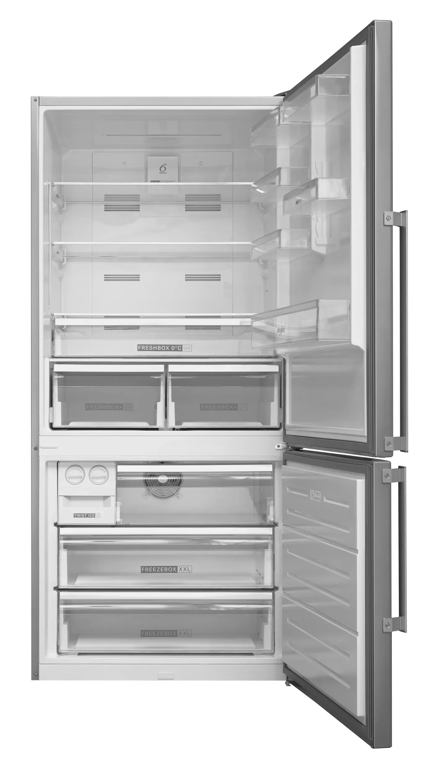 Dva nezávislé chladicí systémy No Frost vytvářejí ideální beznámrazové prostředí pro skladování potravin, zajišťují ideální teplotu a vlhkost a zabraňují mísení pachů mezi chladničkou a mrazničkou. Ovoce a zeleninu můžete umístit kamkoli do chladničky, Dual No Frost je udrží čerstvé až 15 dní*.