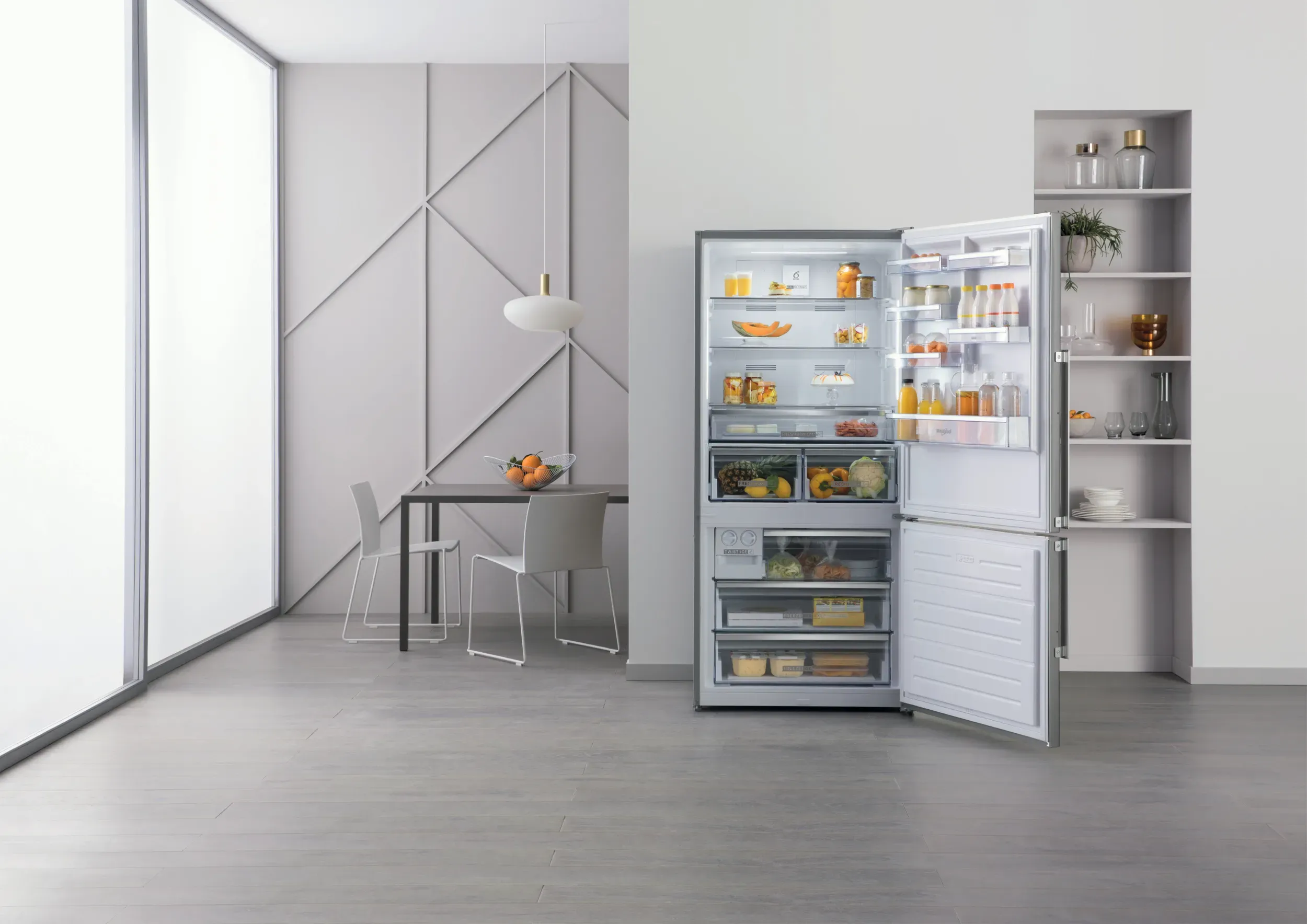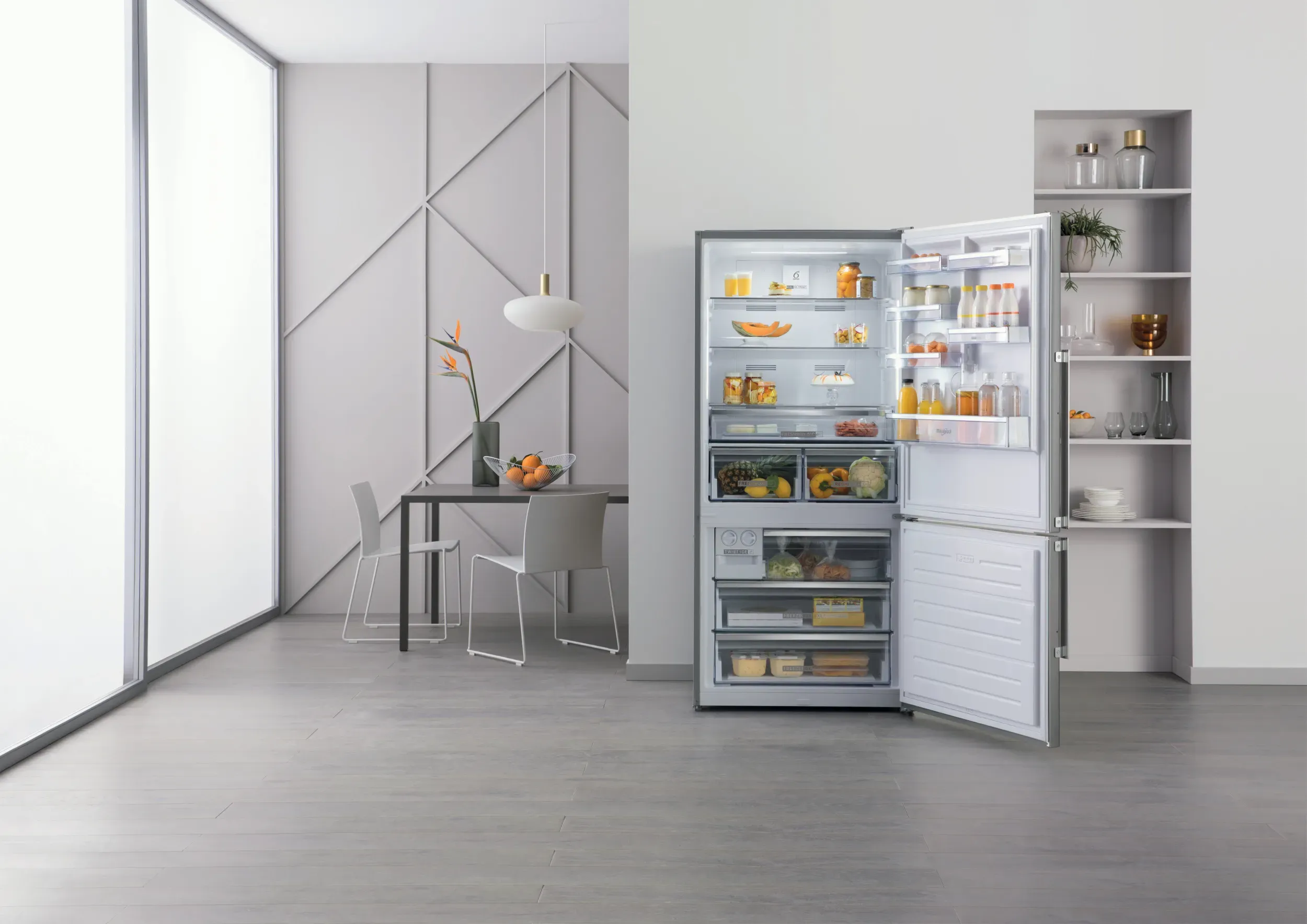 Rychlé chlazení. Teplota uvnitř chladničky se po uložení nových potravin okamžitě sníží. Zabudované senzory automaticky upravují teplotu chlazení, čímž zajišťují nízkou spotřebu energie a delší čerstvost.