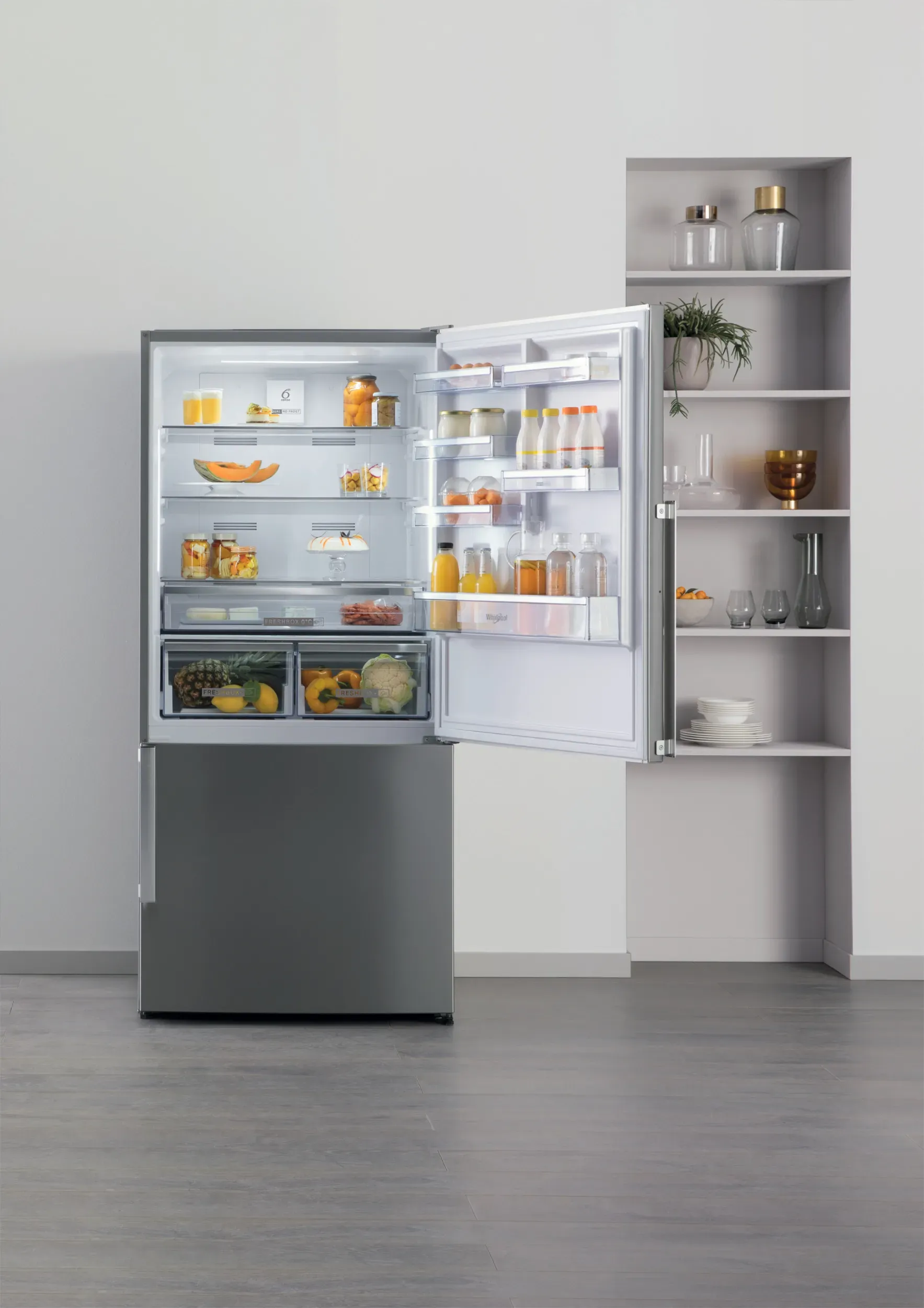 Veškerý prostor, který potřebujete. Inovativní design této chladničky s mrazničkou Whirlpool vám poskytne veškerý prostor a flexibilitu, který potřebujete k pohodlnému a snadnému skladování potravin a nápojů.