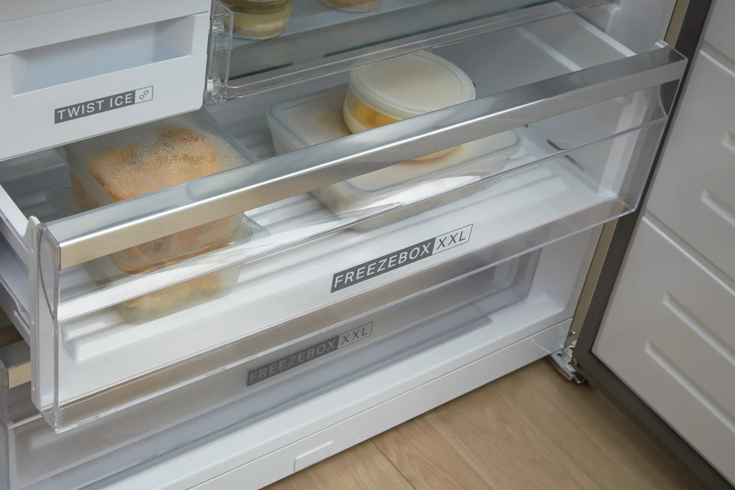 Bez nutnosti odmrazování. Technologie No Frost snižuje vlhkost uvnitř mrazničky a zabraňuje tvorbě ledu.