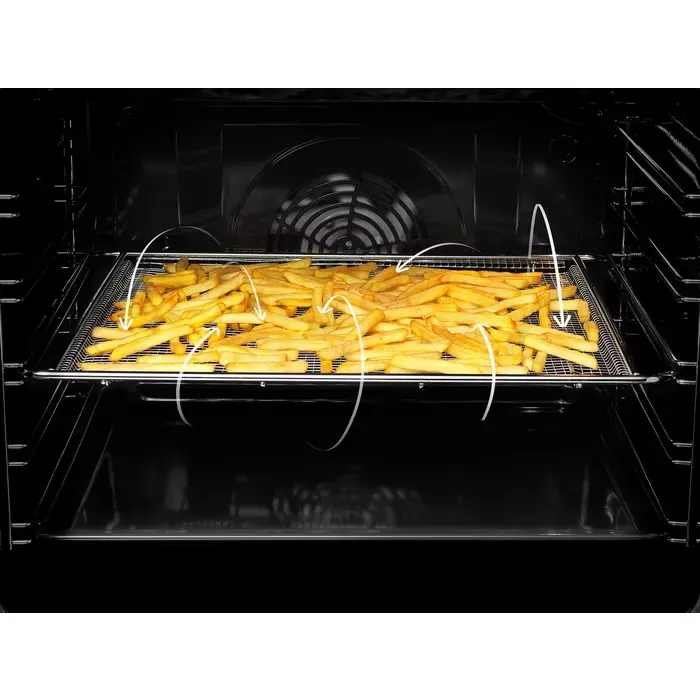 Užívejte si křupavých hranolků nebo chutné zeleniny s menším množstvím oleje díky speciální funkci a plechu AirFry. Perforovaný plech umožňuje horkému vzduchu uvnitř trouby neomezeně cirkulovat a tím se vaše jídlo připravuje ze všech stran. Dokonale křupavé, pokaždé.