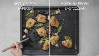 Tato inovativní keramická vrstva nedovolí mastnotě a nečistotám, aby přilnuly k plechu na pečení Easy2Clean, proto můžete péci bez vymazávání nebo pečicího papíru. A ke snadnému čištění vám stačí teplá voda, vlhký hadřík a trocha saponátu.