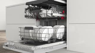 Flexibilní uspořádání nádobí Dokonalá organizace prostoru. Díky modulárním košům a nastavitelným držákům talířů si můžete prostor v myčce zvětšovat, zmenšovat nebo přizpůsobovat svým představám.