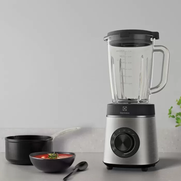 "Vytváření řady zdravých a skvěle chutnající směsí nebylo nikdy snazší než s lopatkami Explore 6 a Truflow®. Výkonný 1400W motor pohání šest lopatek pro optimalizaci cirkulace při přípravě horkých i studených nápojů a pokrmů a dosažení konzistence hladší až o 48 %*. *V porovnání s mixérem Electrolux Create 3 (E3TB1-4GB) na základě interního testu (2021) provedeného měřením zbytků o velikosti větší než 1 mm při maximální rychlosti po dobu 1 minuty a využití standardního receptu z IEC60335-2-14"
