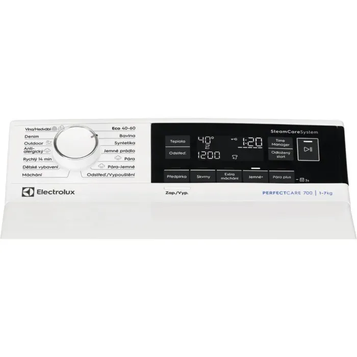 Funkce: Temp Selection, výběr otáček, předpírka, Stain, pouze máchání, Soft Plus, Steam Plus, Delay, Time Manager, start/pauza