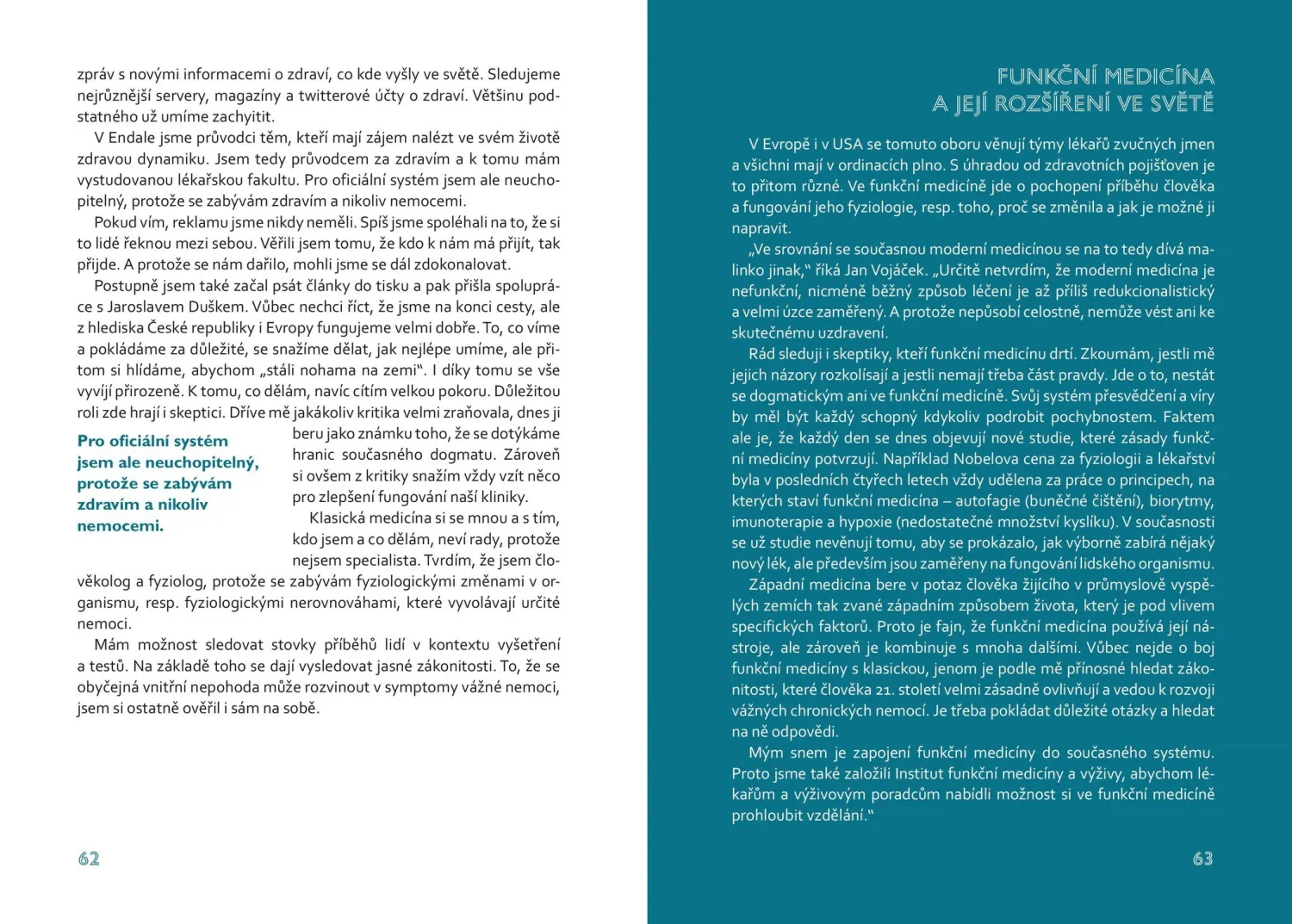 Umění být zdráv nemá v žádném případě konkurovat či nahradit praktiky klasické medicíny. Vnímejme ji jako vhodné doplnění a ukázku možného návratu ke kořenům, tak jak to dělali již ve starověkém Řecku při hledání harmonie mezi tělem a duší. MUDr. Jan Vojáček odhaluje možnosti, jak léčit i nemocem předcházet skrze méně známý medicínský přístup zvaný funkční.